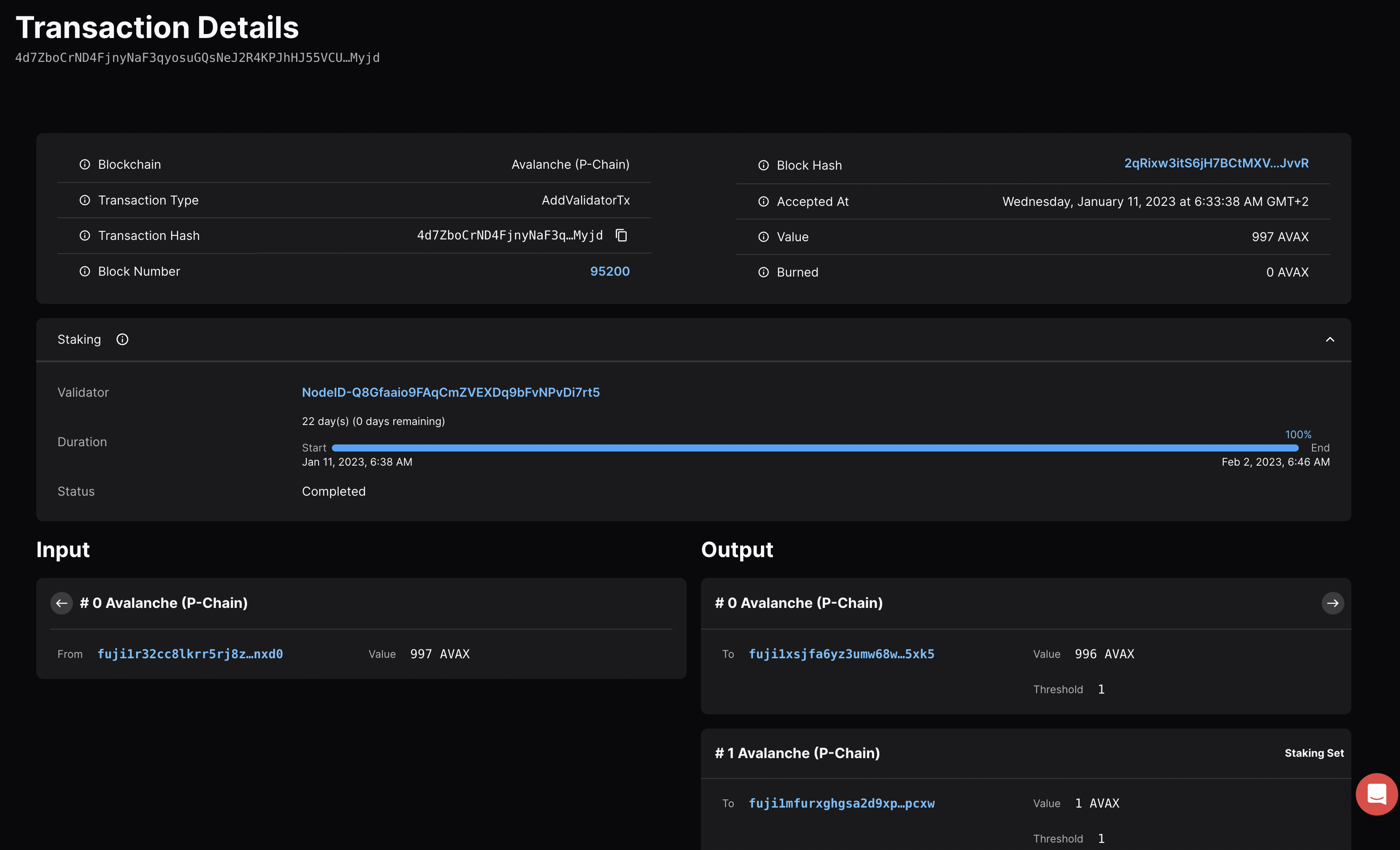 Architecture While the concept of Subnets is still supported in the Avalanche network, it is recommended to launch new blockchains as L1s to take advantage of the benefits outlined earlier. Since the naming of Subnets is deep enshrined in the Avalanche network, you will still see it sometimes in the code or the transaction names. # Create a Blockchain (/academy/avalanche-l1/avalanche-fundamentals/04-creating-an-l1/05-create-blockchain) --- title: Create a Blockchain description: Learn how to configure a blockchain and create a record for it on the P-Chain by issuing a CreateChainTx transaction using the Builder Tooling. updated: 2025-03-13 authors: [owenwahlgren] icon: SquareMousePointer --- Now that you have Core wallet set up and some AVAX on the P-Chain you can create a Subnet. You will do this by issuing a `CreateSubnetTx` transaction. This will create a Subnet that is uniquely identified by the transaction hash of the `CreateSubnetTx` transaction. The `CreateSubnetTx` transaction only has a single parameter: The owner of the Subnet. The owner can add blockchains to the Subnet and convert it to an L1. With the conversion to an L1 the owner will loose it's privileges. Therefore, the owner is only relevant during the creation time and does not have to be secured by a mulit-sig if a immediate conversion to an L1 is planned. We will just use your P-Chain address as the owner. Then you will issue the `CreateChainTx` on the P-Chain to create the blockchain record. The `CreateChainTx` transaction as the following parameters: - `name`: The name of the chain - `subnetID`: The ID of the Subnet you want to add the chain to - `vmID`: The ID of the Virtual Machine that will be used to run the chain. - `genesisData`: The genesis configuration of the chain The Genesis Builder tool allows us to configure many aspects of the blockchain like permissioning, it's tokenonomics and the transaction fee mechanism. Feel free to browse through the different configuration options, but for now don't change any of the defaults and just click the `View Genesis JSON` button. Then click `Create Chain` This will create the P-Chain record for your blockchain and associate it with the Subnet created in the previous step. The blockchain will be uniquely identified by the transaction hash of the `CreateChainTx` transaction. Congratulations! You have successfully created a blockchain record on the P-Chain. The blockchain does not have any validator nodes yet, so we can't connect our wallet to it or issue any transactions just yet. You will learn how to do that in the next section. # Set up Validator Nodes (/academy/avalanche-l1/avalanche-fundamentals/04-creating-an-l1/06-run-a-node) --- title: Set up Validator Nodes description: Learn how to deploy validator nodes for your L1 using managed infrastructure or self-hosted Docker deployments. updated: 2025-03-19 authors: [owenwahlgren] icon: Terminal --- import AvalancheGoDocker from "@/components/toolbox/console/layer-1/AvalancheGoDockerL1"; import ToolboxMdxWrapper from "@/components/toolbox/academy/wrapper/ToolboxMdxWrapper.tsx"; Now that the P-Chain records are set up, you can start syncing the node with your Subnet. ## Run Your L1 Node Use our free managed testnet infrastructure to instantly deploy a node for your L1, no need for Docker or Cloud Provider account set up with credits. Enjoy the benefits of: - Instant deployment with one click - Automatic configuration for your Subnet - Free for testnet development - Monitor and manage through the [Builder Console](/console/testnet-infra/nodes) Managed nodes automatically shut down after 3 days. For production or extended testing, see the self-hosted option below. ## Optional Alternative: Self-Hosted Infrastructure The free managed testnet nodes are a great option for playing around with Avalanche L1s, but are not intended for running on production environments. They are shut down automatically after 3 days. If you want to test out your production environment, running beyond 3 days, or anything more complex you should run nodes on your own infrastructure using Docker: # Convert a Subnet to an L1 (/academy/avalanche-l1/avalanche-fundamentals/04-creating-an-l1/07-convert-subnet-l1) --- title: Convert a Subnet to an L1 description: Learn how to convert a Subnet to an L1 on the P-Chain by issuing a ConvertSubnetToL1Tx transaction using the Builder Tooling. updated: 2025-03-13 authors: [owenwahlgren] icon: SquareMousePointer --- The node you have just launched is tracking the Subnet but is not yet a validator. In fact, since the Subnet does not have any validators yet it cannot process any transactions. In this step we will do two things at once: 1. Convert the Subnet to an L1 2. Add your node as a validator Converting a Subnet to an L1 requires the Subnet owner issuing a `ConvertSubnetToL1Tx` transaction on the P-Chain. This transaction establishes a new validator set for your blockchain and transforms it from a Subnet into a sovereign L1 chain. The `ConvertSubnetToL1Tx` transaction is a one-time transaction that can only be executed once by the Subnet owner(s). After the conversion the subnet owner looses all privileges and the L1 is controlled by a validator manager contract, that manages the validator set. You will learn more about this in the next chapter. The `ConvertSubnetToL1Tx` has the following parameters: - **Subnet ID** - The unique identifier of your Subnet - **Validator Manager Blockchain ID** - The ID of the blockchain where the Validator Manager contract will be deployed. This blockchain can belong to the L1, be the C-Chain or belong to any other L1 in the Avalanche network - **Validator Manager Address** - The address of the contract on that blockchain - **Validators** - The initial set of validators for the L1 The **Validator Manager Address** is initially set to an OpenZeppelin [TransparentUpgradeableProxy](https://docs.openzeppelin.com/contracts/4.x/api/proxy) contract pre-deployed in the `genesis.json`. Aft