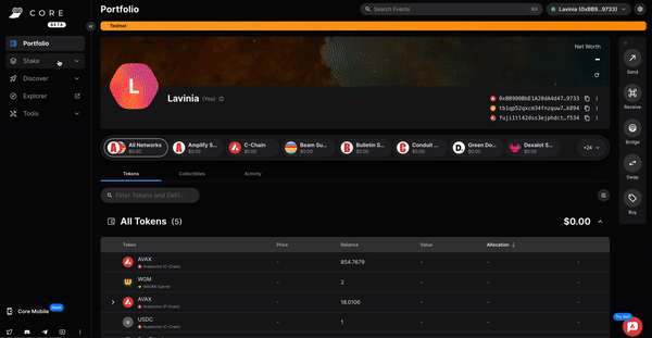 ); } ``` ## Cross-Chain Operations JSON-RPC accounts support cross-chain operations through the Avalanche Client SDK: ```typescript // P-Chain export transaction const pChainExportTxn = await walletClient.pChain.prepareExportTxn({ destinationChain: "C", fromAddress: address, exportedOutput: { addresses: [address], amount: avaxToWei(0.001), }, }); const txHash = await walletClient.sendXPTransaction(pChainExportTxn); ``` ## Best Practices ### 1. Check Provider Availability ```typescript // Always check if the provider is available if (typeof window !== "undefined" && window.avalanche) { // Core is available } else if (typeof window !== "undefined" && window.ethereum) { // MetaMask is available } else { // No wallet provider found } ``` ### 2. Handle Network Switching ```typescript // Check if wallet is on the correct network const currentChainId = await walletClient.getChainId(); if (currentChainId !== avalanche.id) { await walletClient.switchChain({ id: avalanche.id }); } ``` ### 3. Graceful Error Handling ```typescript const handleWalletError = (error: any) => { switch (error.code) { case 4001: return "User rejected the request"; case -32002: return "Request already pending"; case -32602: return "Invalid parameters"; default: return error.message || "Unknown error occurred"; } }; ``` ## Troubleshooting ### Common Issues **Provider Not Found** ```typescript // Check if provider exists if (!window.avalanche && !window.ethereum) { throw new Error("No wallet provider found. Please install Core or MetaMask."); } ``` **Wrong Network** ```typescript // Ensure wallet is on the correct network const chainId = await walletClient.getChainId(); if (chainId !== avalanche.id) { await walletClient.switchChain({ id: avalanche.id }); } ``` **User Rejection** ```typescript try { await walletClient.send({ to: address, amount: 0.001 }); } catch (error) { if (error.code === 4001) { console.log("User rejected transaction"); } } ``` ## Next Steps - **[Local Accounts](accounts/local)** - Learn about local account management - **[Wallet Operations](methods/wallet-methods/wallet)** - Learn how to send transactions - **[Cross-Chain Transfers](methods/wallet-methods/wallet#cross-chain-transfers)** - Moving assets between chains # Network-Specific Addresses (/docs/tooling/avalanche-sdk/client/accounts/local/addresses) --- title: "Network-Specific Addresses" icon: "map-pin" --- ## Overview Avalanche uses different address formats for each chain. EVM addresses work the same across networks, but XP addresses use network-specific HRPs (Human-Readable Prefixes). ## Address Formats ### EVM Addresses (C-Chain) EVM addresses are the same across all networks: ```typescript const evmAddress = account.getEVMAddress(); // 0x742d35Cc... ``` ### XP Addresses (X/P-Chain) XP addresses use network-specific HRPs: ```typescript // Mainnet const mainnetX = account.getXPAddress("X", "avax"); // X-avax1... const mainnetP = account.getXPAddress("P", "avax"); // P-avax1... // Testnet (Fuji) const fujiX = account.getXPAddress("X", "fuji"); // X-fuji1... const fujiP = account.getXPAddress("P", "fuji"); // P-fuji1... ``` ## Network Configuration ```typescript // Mainnet addresses const mainnet = { evm: account.getEVMAddress(), xChain: account.getXPAddress("X", "avax"), pChain: account.getXPAddress("P", "avax"), }; // Testnet addresses const testnet = { evm: account.getEVMAddress(), xChain: account.getXPAddress("X", "fuji"), pChain: account.getXPAddress("P", "fuji"), }; ``` ## Next Steps - **[Account Utilities](accounts/local/utilities)** - Account validation and utilities - **[Using Accounts with Clients](accounts/local/clients)** - Client integration patterns # Using Accounts with Clients (/docs/tooling/avalanche-sdk/client/accounts/local/clients) --- title: "Using Accounts with Clients" icon: "link" --- ## Overview Accounts work with both public clients (read-only) and wallet clients (transactions). You can hoist the account into the client or pass it to each method. ## Public Client (Read-Only) ```typescript import { createAvalancheClient } from "@avalanche-sdk/client"; import { avalanche } from "@avalanche-sdk/client/chains"; import { privateKeyToAvalancheAccount } from "@avalanche-sdk/client/accounts"; const client = createAvalancheClient({ chain: avalanche, transport: { type: "http" }, }); const account = privateKeyToAvalancheAccount("0x..."); // Read operations const balance = await client.getBalance({ address: account.getEVMAddress() }); const height = await client.pChain.getHeight(); ``` ## Wallet Client (Transactions) ```typescript import { createAvalancheWalletClient } from "@avalanche-sdk/client"; import { avalanche } from "@avalanche-sdk/client/chains"; import { privateKeyToAvalancheAccount } from "@avalanche-sdk/client/accounts"; import { avaxToWei } from "@avalanche-sdk/client/utils"; const account = privateKeyToAvalancheAccount("0x..."); // Hoist account (recommended) const walletClient = createAvalancheWalletClient({ account, // Account is hoisted chain: avalanche, transport: { type: "http" }, }); // C-Chain transaction const txHash = await walletClient.send({ to: "0x742d35Cc6634C0532925a3b8D4C9db96C4b4d8b6", amount: avaxToWei(0.001), }); // X/P-Chain transaction const xpTx = await walletClient.xChain.prepareBaseTxn({ outputs: [{ addresses: [account.getXPAddress("X")], amount: 1 }], }); await walletClient.sendXPTransaction(xpTx); ``` ## Account Hoisting You can hoist the account into the client (recommended) or pass it to each method: ```typescript // Hoisted (recommended) const walletClient = createAvalancheWalletClient({ account, // No need to pass to each method chain: avalanche, transport: { type: "http" }, }); await walletClient.send({ to: "0x...", amount: 0.001 }); // Or pass per method const walletClient = createAvalancheWalletClient({ chain: avalanche, transport: { type: "http" }, }); await walletClient.send({ account, to: "0x...", amount: 0.001 }); ``` ## Cross-Chain Operations Cross-chain transfers use the export/im